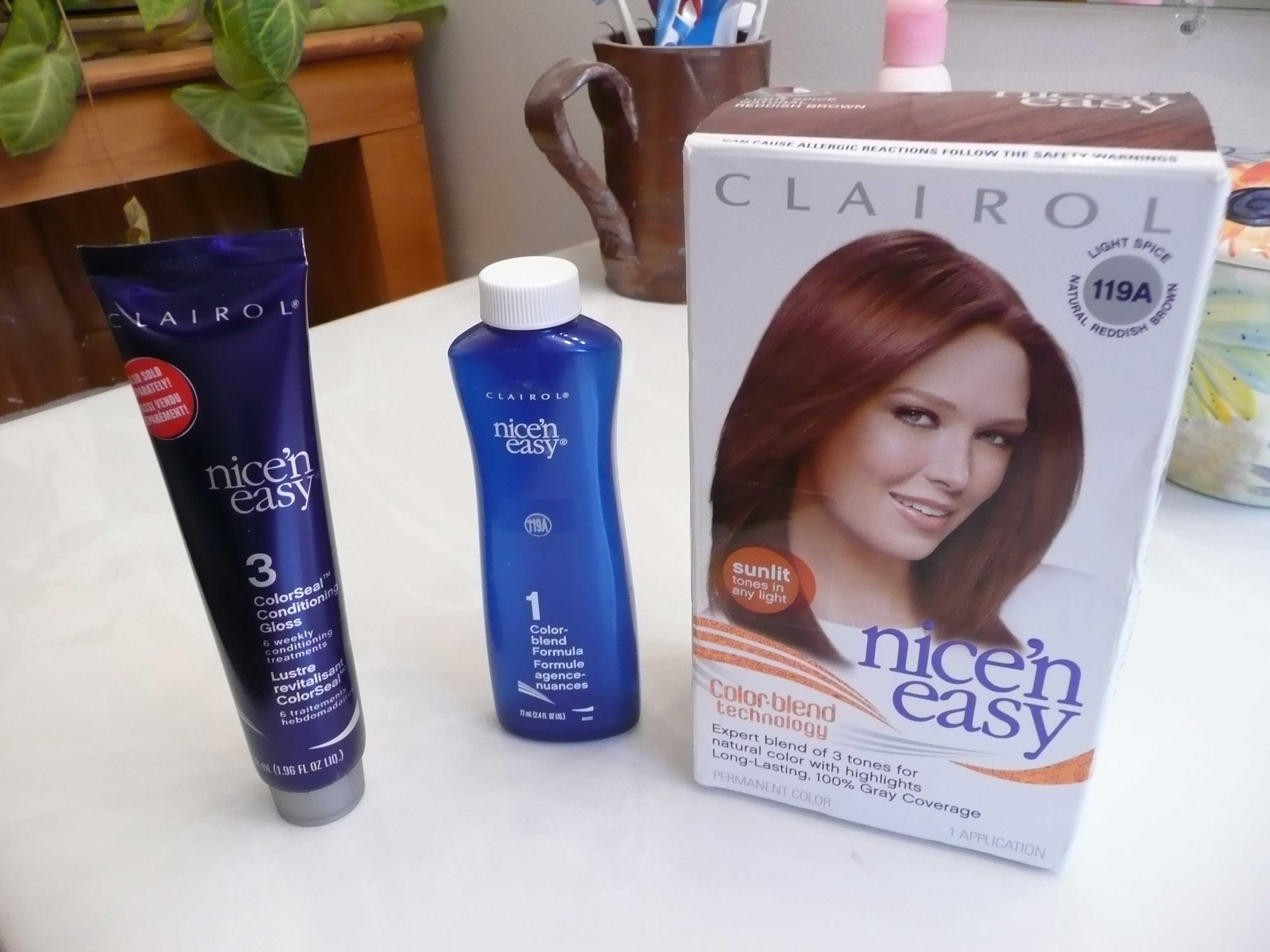 It had been some time since we colored her hair so her El natural color was what you mostly saw. Well Merriann really likes her hair to be red-dish so this time she picked Nice’n Easy’s Light Spice Natural Reddish Brown so that the color change wouldn’t be that big of a deal.