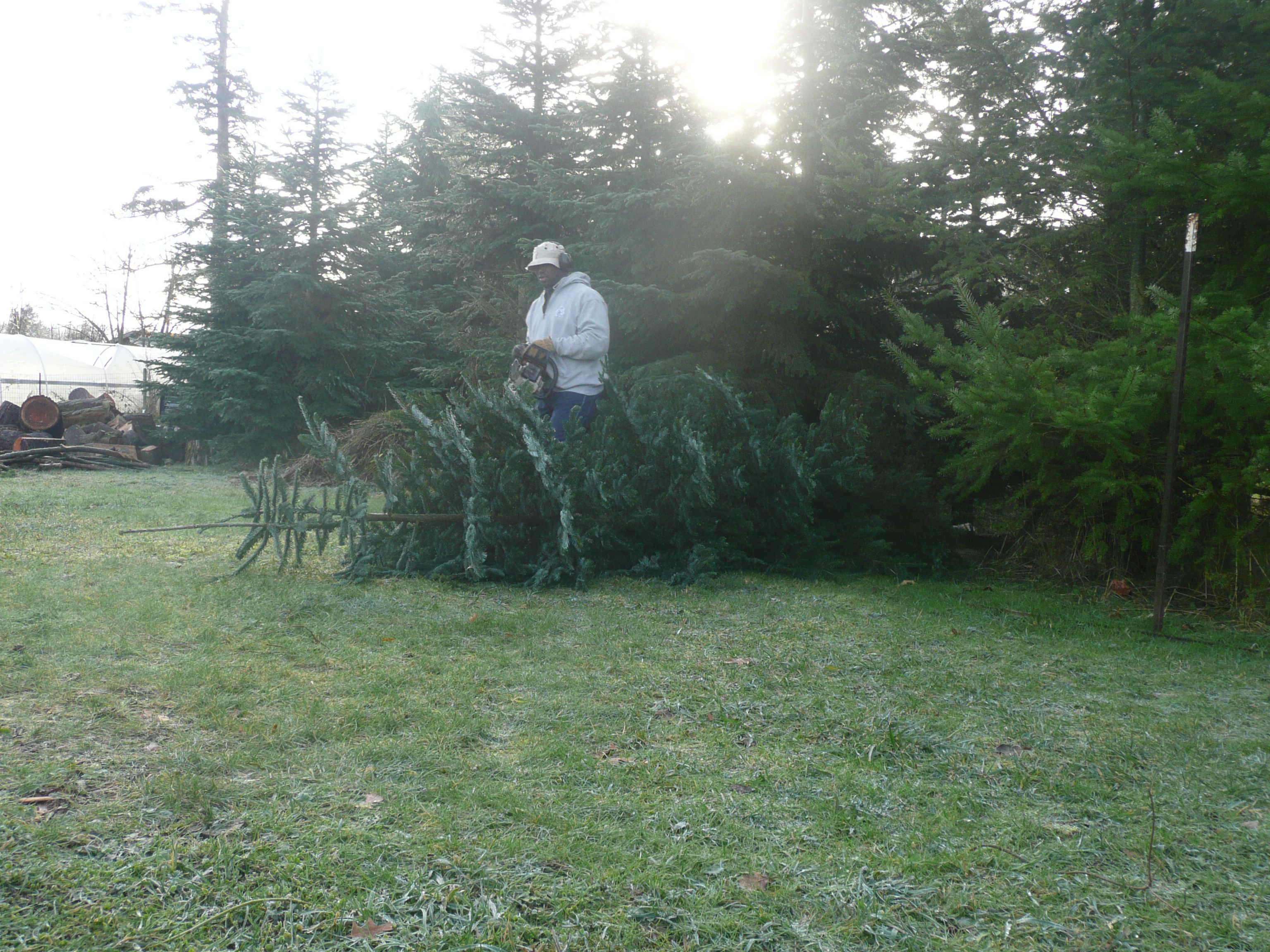 We usually have this “tradition” where everyone gets a turn cutting the tree with the HAND saw. This year we started a new tradition…chain saw! Greg was not about to put hands on a hand saw when we’re at our own house.