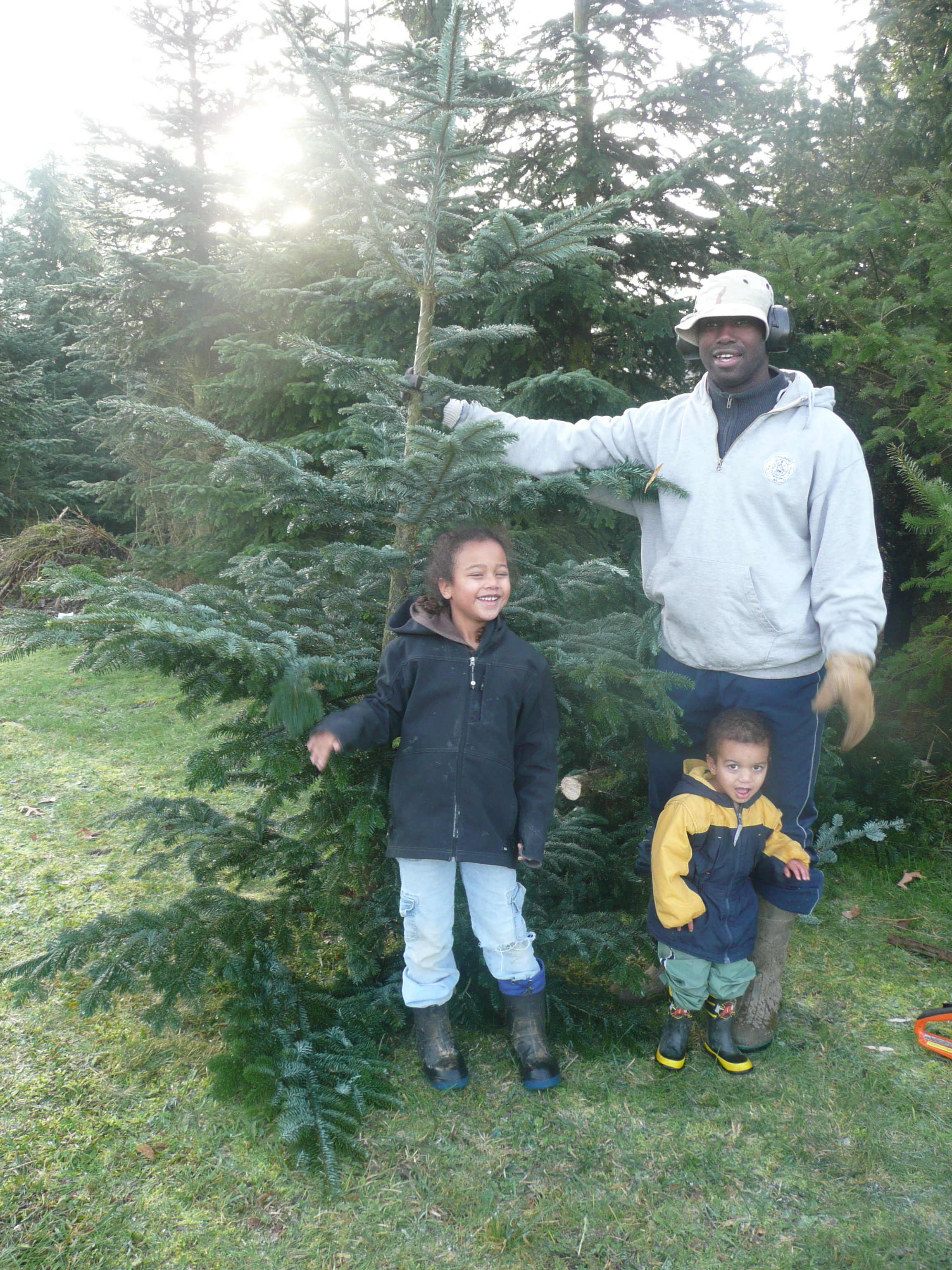 Aren’t they a sweet bunch. This is the part we kept. A little different close up. And one thing I would recommend (if you should ever find yourself cutting large Christmas trees from your back yard) don’t do it when they are frozen! We lost a couple of branches when it came crashing down.