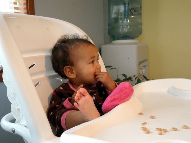 Abigail has been changing so much so quickly. She seemed to go from my little baby to this crawling, climbing, tackling, clapping, babbling little girl. Where did my baby go? I know I have asked this question as each little baby has made this change but with each child this change is more and more precious. Its no wonder people have a dozen of ’em.