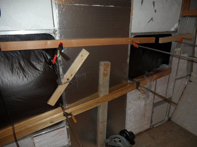 While waiting for the adhesive to dry I installed a new door to the bathroom,(or head) for you navy people out there. Our old door has always been a pain be cause of the placement of the rear bed. We could never fully open it. It could only be opened about a third of the way. (And yes it was designed that way).