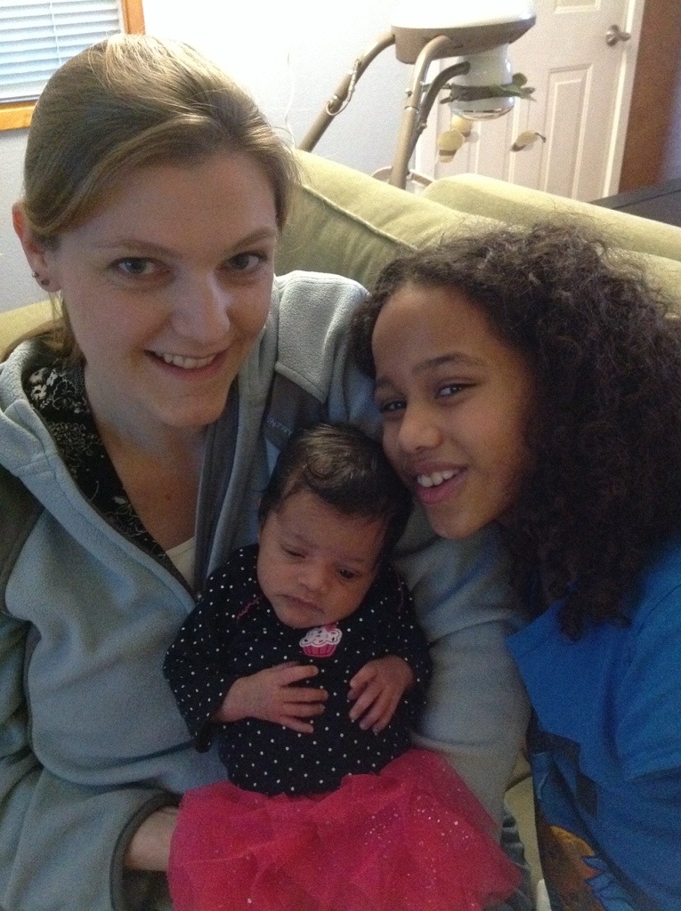 Zoe and Oliver were so excited to meet her. Zeke was a little less sure about the whole thing. But he wants to play with her now and I am not sure he gets why he has to be so gentle with her.