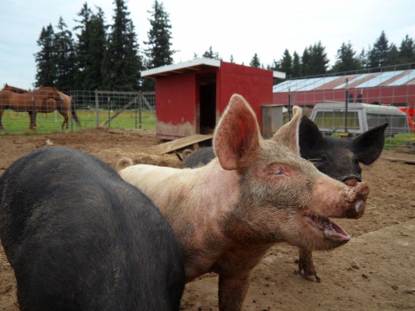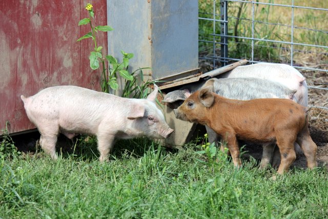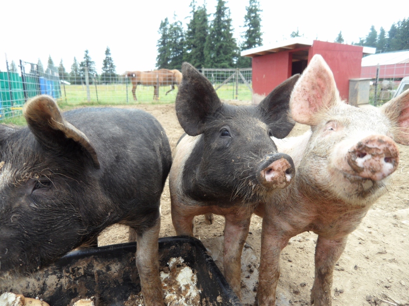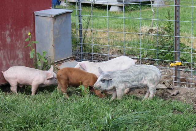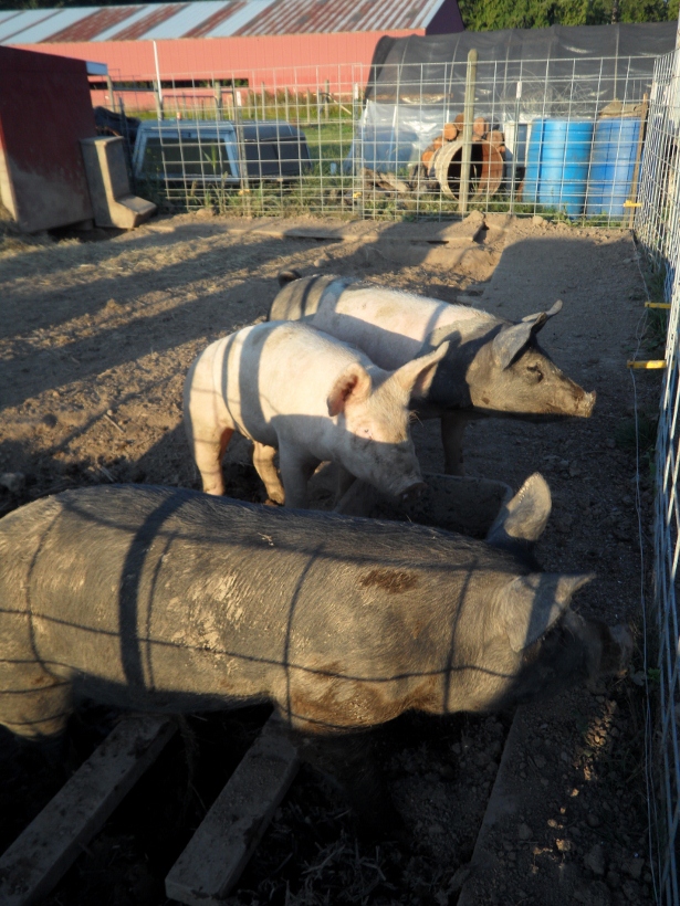 We got our piggies early this year! Say hello to Pepperoni, Deli and Hot Dog. We talked about raising winter pigs so we wouldn’t have to worry about them while traveling over the summer or the smell in the warmer months. Then we found a guy that had 3 month old pigs. Score! We usually get pigs at 2 months so that was one less month we had to feed them.