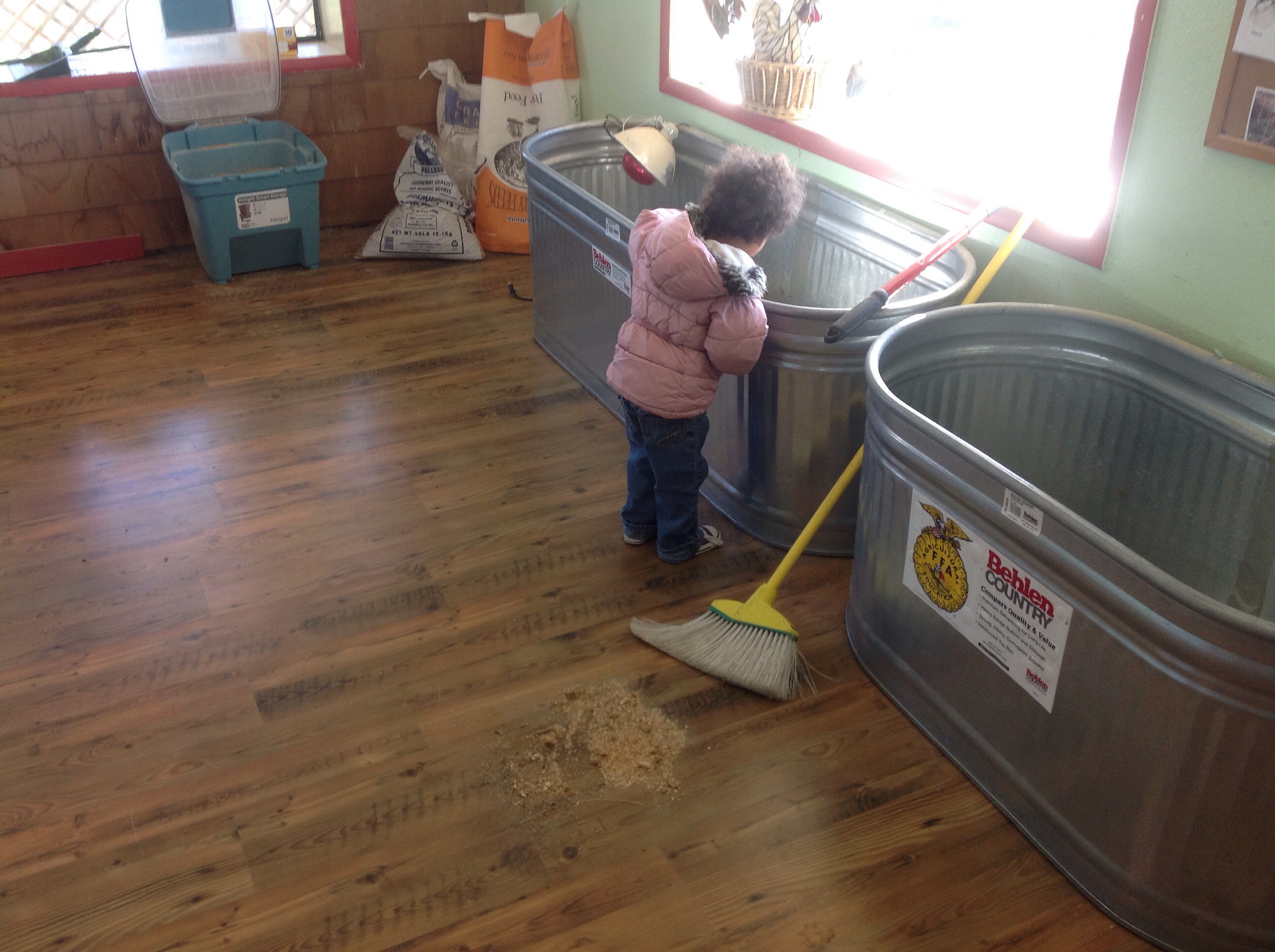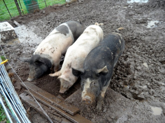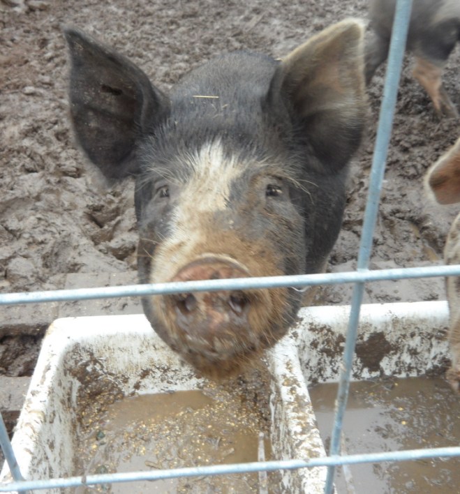 Each year we try out a new feeding system for the pigs. This “clean-looking one is this years. So far so good.
